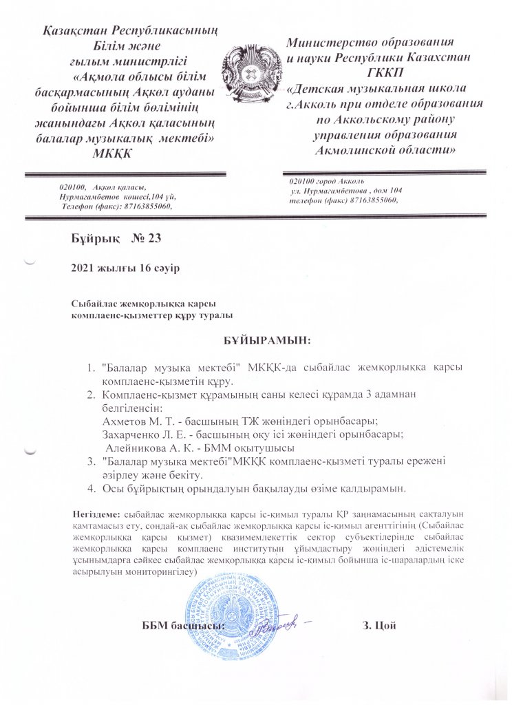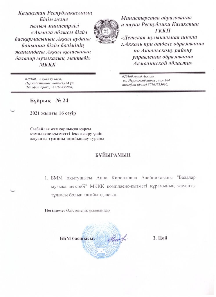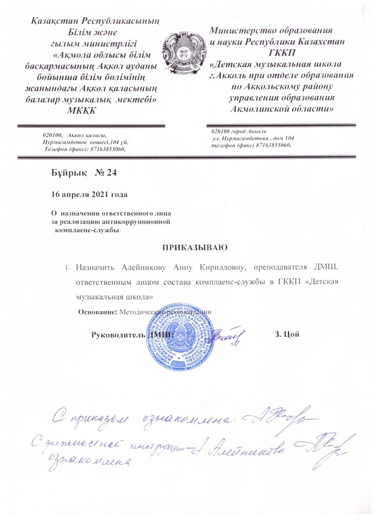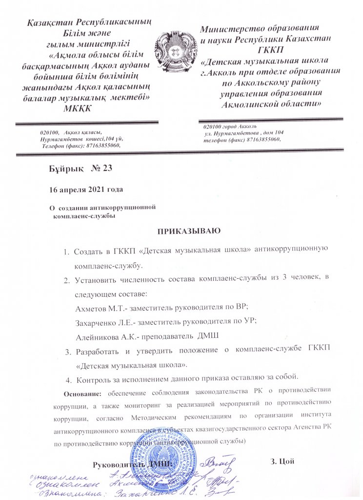 Государственное коммунальное казенное предприятие "Детская музыкальная школа города Акколь при отделе образования по Аккольскому району управления образования Акмолинской области"