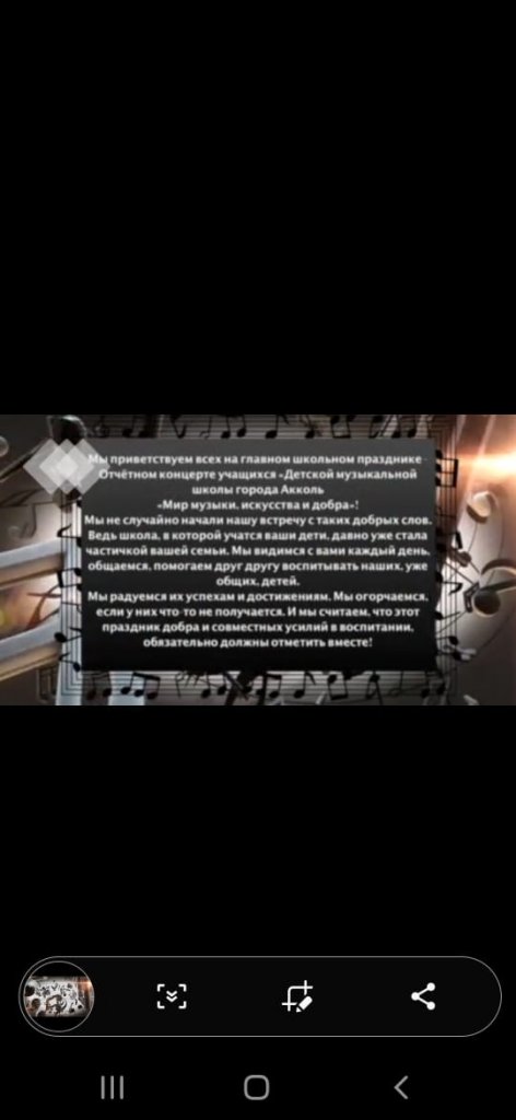 Мерекеге үздік оқушылар , сайыстарға қатысушылар және олардың жеңімпаздары атап өтілді. Балаларға "Музыкадағы жеңістіктері және үздік оқуы үшін" грамоталары табысталды. Сондай-ақ , есеп беру концертінің бейнежазбаны жасалып ,ата-аналармен оқушылар тобына жіберілді.